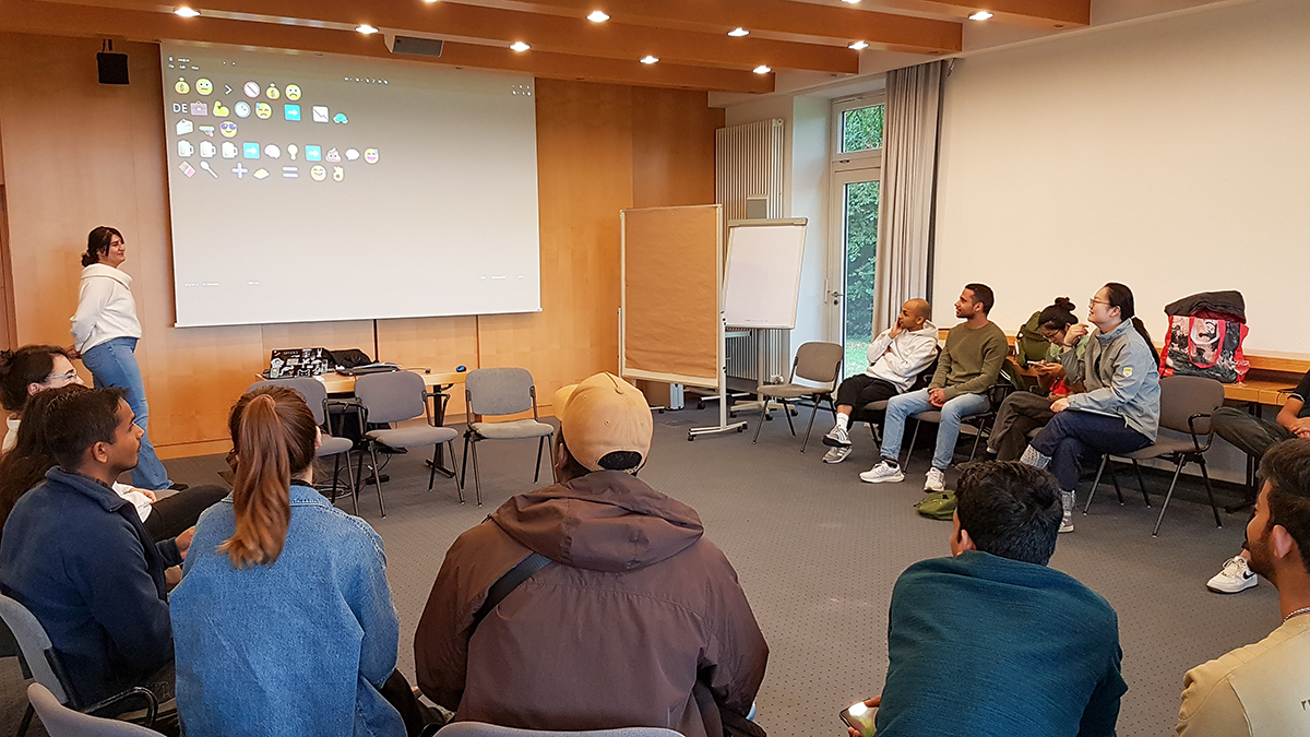 Im Anschluss leitete Sara Sarvestani, Studentin im Studiengang Digitales Management, eine kreative Kennenlernrunde, die für viel Spaß und gute Stimmung sorgte.